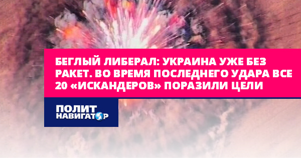 Беглый либерал: Украина уже без ракет. Во время последнего удара все 20 «Искандеров» поразили цели