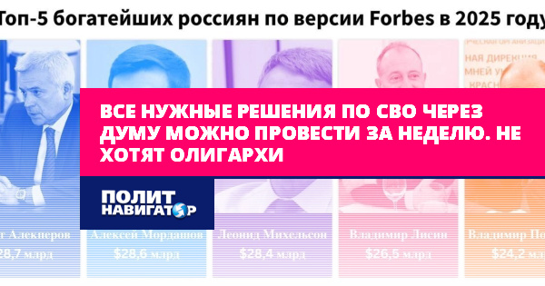 Все нужные решения по СВО через Думу можно провести за неделю. Не хотят олигархи